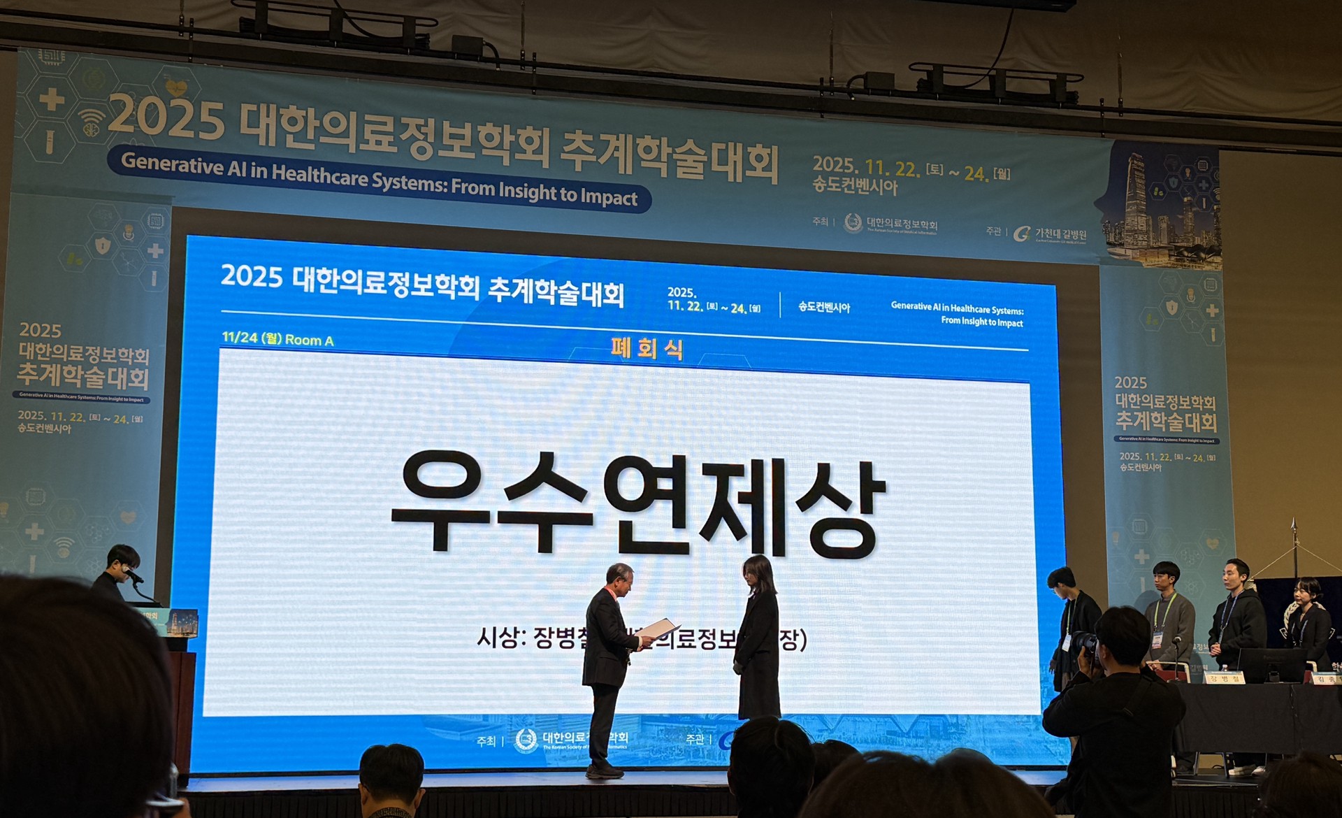 David Seung U Lee, a Ph.D. student at CCADD, and Seeun Park, an undergraduate researcher and the soon-to-be Master’s student at CCADD, received the Outstanding Presentation Awards at the 2025 Fall Conference of the Korean Society of Medical Informatics (KOSMI).